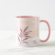 An abstract watercolor featuring patterned shapes and a botanical in a palette of maroon and soft calming colours. Personalise with initials.