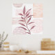 An abstract watercolor featuring patterned shapes and a botanical in a palette of maroon and soft calming colours.