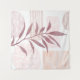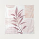 An abstract watercolor featuring patterned shapes and a botanical in a palette of maroon and soft calming colours.