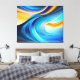 This stretched canvas wall art is shown with a colourful abstract art print.