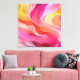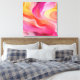 This stretched canvas wall art is shown with a colourful abstract art print.