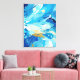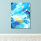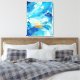 This stretched canvas wall art is shown with a colourful abstract art print.