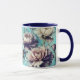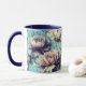 This is a Habatour Creations coffee mug, adorned with an authentic abstract carnations pattern design with faint silver undertones.