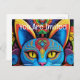 Abstract Cat with Yellow Eyes Invitation Postcard