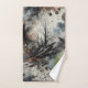 Bring a bold artistic touch to your bathroom with this unique hand towel, featuring an abstract depiction of a scorched forest landscape. The high-resolution design captures the eerie beauty of burnt trees, cracked earth, and wisps of smoky sky, while vibrant green sprouts symbolise resilience and renewal. A blend of deep greys, warm earthy browns, and subtle blues creates a moody, sophisticated aesthetic that complements modern, rustic, and industrial-style spaces.