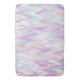 An abstract chevron design in a purple, turquoise, ivory and white palette.