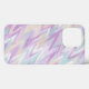 An abstract chevron design in a purple, turquoise, ivory and white palette.