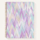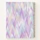 An abstract chevron design in a purple, turquoise, ivory and white palette.