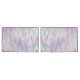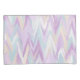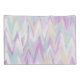 An abstract chevron design in a purple, turquoise, ivory and white palette.