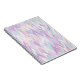 An abstract chevron design in a purple, turquoise, ivory and white palette.