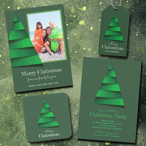 Stylish, modern abstract Christmas Tree on green background, fun paper plates for your Christmas holiday party. MATCHING items in our store.