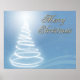 Illustration of an abstract Christmas Tree on a light blue background that has swirling snow flakes on it. Beautiful modern design for Christmas.