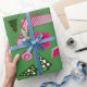 Abstract Christmas wrapping paper with pink and green.