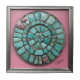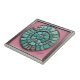 Abstract circle of turquoise and pink stones ceramic tile features a stunning mosaic of turquoise and pink stones arranged in a captivating sunburst pattern. The rich colours and intricate design create a visually striking piece of art that will add a touch of bohemian charm to any space.