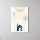 Abstract circles, pin stripes and arches with moody black cat. Colours of cream, dusty blue, terracotta and black.