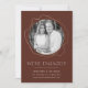 Share the news of your engagement in style with these elegant engagement announcements! The announcement features your engagement photo encircled by faux gold abstract circles on a brown background. "We're Engaged!" is displayed in white modern lettering with your name and details below.
