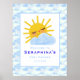 Throw the cutest "You are my sunshine" themed baby shower ever with this adorable personalised baby shower poster welcome sign decoration. Welcome your guests with this custom blue and white, sunshine and cloudy sky banner. This baby shower welcome sign is fully customisable. To edit the text, click "personalise this template". Graphics used in this design were hand drawn by OhMyStarling making it a unique piece for your sunshine baby shower theme. This baby shower decoration features a cute textured smiling sun peeking out from behind a fluffy rain cloud illustration and a fun abstract blue and white cloud pattern.