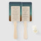 Modern wedding program hand fan featuring your details over an abstract coastal background.