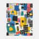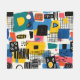 This artwork features a dynamic and eclectic composition of abstract shapes, patterns, and textures, layered together in a collage-like arrangement. The design incorporates bold colours such as blue, yellow, red, and black, with each element varying in size and form. Hand-drawn lines, grids, and brushstrokes add a playful and spontaneous feel to the piece, while the irregular arrangement of the shapes creates a sense of movement and energy. The combination of geometric forms and freehand marks gives the artwork a modern, artistic vibe.