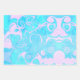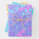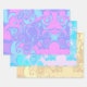These wrapping paper sheets have an abstract swirl pattern with different colors. One sheet had a white blue color theme, another has a golden yellow color theme, and the third one has a blue pink purple color theme.
