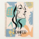 Abstract colourful design with gold, pink, blue and turquoise irregular shapes and woman face line art. This design is for everybody who likes abstract art. You can easily customise this item changing the name and date.