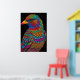 Abstract Colourful Drawing of A Bird on a black background. The aspect ratio is 2:3. It was designed to be printed as 24"x36"