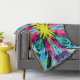 A quality printed throw has its advantages. This is a much finer weave throw than its loopier cousins, and though lighter, it is worth the investment for custom room accessorizing. The back is much prettier than the typical brown, and the fringe on the long sides very vivid, the selvage nicely done. Before photographing, I washed the throw in cold water, delicate, with a thicker woven throw the same size. On tumble dry low, this throw was dry in half the time as the other. This is a very practical quality if you use throws for furniture covers or to wrap up in frequently. The sleekness of the fabric makes it a great layer for accenting or protecting without the feeling of sitting on too much stuff. Perfect for napping or when you feel a light chill coming on. The color printing is beautiful and on this fabric, matched the design and color of my Photoshop image. This is an advantage for blending room fabrics and colors. The fringe on the short sides prints the colors from the design image and therefore varies from the side fringe. I streaked a white fractal line through the plaid pattern to give the illusion of weaving. This printed as crisp as an illusory thread, and put some white in the short side fringe, showing another advantage of print vs loomed- for artistic purposes, line lines, detail, and color integrity can be planned and preserved. My loomed throws have color limitations and more of a needlepoint texture. Print throws reproduce an exact image. The throw felt a little stiff straight out of the package, but this went away in the first delicate wash. Of course I searched the wash water for ink or bleeding and there was none.