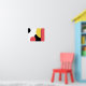 Abstract, colourful graphic design made with geometric shapes (circles and rectangles) in city buildings, sun and life abstraction. Modern, simple, bold, vibrant and minimal art in yellow, red and black colours.
