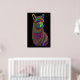 Abstract Colourful Painting of a Llama on a black background. The aspect ratio is 2:3 It was designed to be printed as 24"x36"