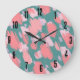 This abstract colourful brushstroke pattern features a mix of calming yet vibrant hues with blush pink, flamingo pink, turquoise, and a tiny subtle hint of purple. Trendy Abstract Brushstrokes Colourful Pattern Large Clock