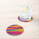 This colourful paper coaster features an abstract design in bright red, purple, yellow, green, and blue shades.