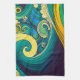 Abstract Colourful Retro 70s Hippie Waves Artwork Tea Towel