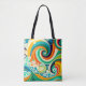 Abstract Colourful Retro 70s Hippie Waves Artwork Tote Bag