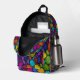 Lightweight and durable, our custom all over print Backpack is just what you need. The spacious interior is ideal for travel, school, gym, or any mobile storage need. Bring your stuff with you in style! Features adjustable padded shoulder straps, two chambers on the inside for laptop storage, mesh side pockets and identification label.