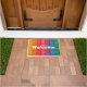 A very colourful (spectrum colours) striped pattern. The colours have a braided structure.