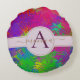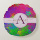 Abstract Colourful Tie Dye Pattern Monogram Name Round Cushion