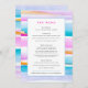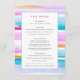 Abstract colourful tropical tidal waves event or wedding menu. Perfect for a minimal or modern beach art tropical or coastal sea wedding or sit down four course dining event. Edit this four course menu with your own meal options. Other matching items available. Original abstract art tropical tide lines in aqua teal, pink, orange and white painted with ink and gouache paint and designed by Sarah Trett for www.mylittleedenweddings.com