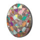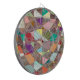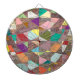 A confetti tapestry of colours form this abstract design. Background in silver purple glitter.