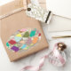 A confetti tapestry of colours form this abstract design. Background in pale gold foil.