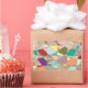 A confetti tapestry of colours form this abstract design. Background in pale gold foil.