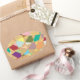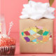 A confetti tapestry of colours form this abstract design. Background textured sun burst pattern.