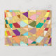 A confetti tapestry of colours form this abstract design. Background textured sun burst pattern.