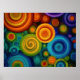 Vibrant concentric circles in various sizes fill the image, creating a dynamic and visually engaging pattern. The mix of colours gives the image a lively and energetic feel.