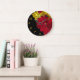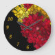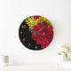 Add a contemporary splash to an empty or colourless wall. This abstract design features red, yellow, and gold jagged geometric shapes and only five of 12 gold numbers over a black background. A good consideration for a housewarming gift.
