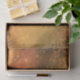 Modern and trendy tissue paper design featuring an abstract copper background with glittery foil paint splatters and sparkles.
