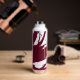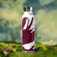Deep, ruby red painted brushstrokes create an abstract backdrop on this personalised water bottle. Art and design © 1201AM Design Studio | www.1201am.com