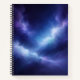 Spiral notebook featuring an abstract deep space design inspired by imaginary nebulae, blending rich blues, violets, and soft cosmic light.