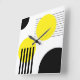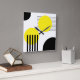 Abstract design illustration with geometrical (circles and stripes) shapes decoration in yellow and black colors on white background.