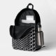 This is a Habatour Creations backpack, decorated with an authentic modern abstract digital pattern design in grey shades