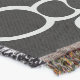 A quality printed throw has its advantages. This is a much finer weave throw than its loopier cousins, and though lighter, it is worth the investment for custom room accessorizing. The back is much prettier than the typical brown, and the fringe on the long sides very vivid, the selvage nicely done. Before photographing, I washed the throw in cold water, delicate, with a thicker woven throw the same size. On tumble dry low, this throw was dry in half the time as the other. This is a very practical quality if you use throws for furniture covers or to wrap up in frequently. The sleekness of the fabric makes it a great layer for accenting or protecting without the feeling of sitting on too much stuff. Perfect for napping or when you feel a light chill coming on. The color printing is beautiful and on this fabric, matched the design and color of my Photoshop image. This is an advantage for blending room fabrics and colors. The fringe on the short sides prints the colors from the design image and therefore varies from the side fringe. I streaked a white fractal line through the plaid pattern to give the illusion of weaving. This printed as crisp as an illusory thread, and put some white in the short side fringe, showing another advantage of print vs loomed- for artistic purposes, line lines, detail, and color integrity can be planned and preserved. My loomed throws have color limitations and more of a needlepoint texture. Print throws reproduce an exact image. The throw felt a little stiff straight out of the package, but this went away in the first delicate wash. Of course I searched the wash water for ink or bleeding and there was none.
